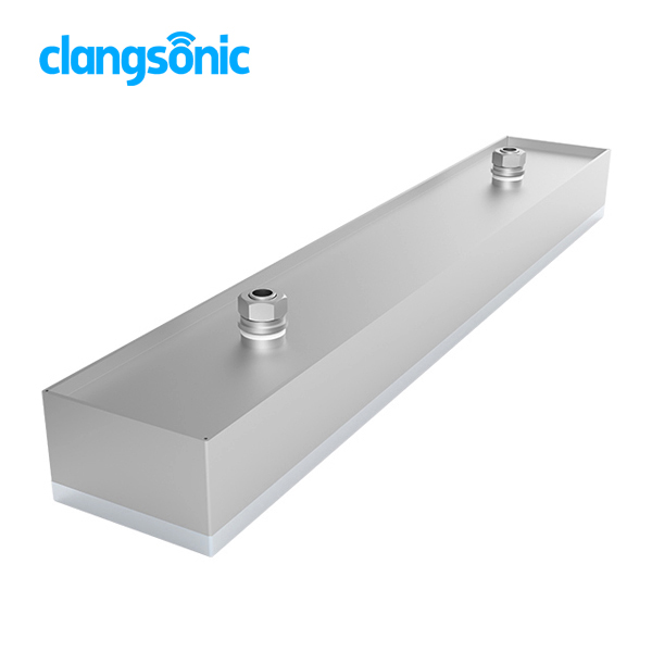 Ultrasoinu bidezko transduktorearen unitate urperatzailea hiru modutan instalatu daiteke: alboan, goian eta behean. Ultrasoinu bidezko garbiketa gailua murgiltze ultrasoinu transduktoreak eta sorgailuak osatzen dute. Eredu estandarreko ultrasoinu garbiketa makina ezin bada lan ingurune jakin batean aplikatu, murgiltze ultrasoinu transduktorea ere egin dezakezu, zehaztapen bereziak pertsonalizatuz. Ultrasoinu bidezko transduktorearen laneko posizioak jariakinaren deposituaren goiko aldean, beheko aldean edo alde bietan instalatu daitezke garbiketa efektu desberdinak lortzeko. Altzairu herdoilgaitzez osatutako egitura da. Azido sendoa eta alkalinoekiko erresistentea den materiala soldadura indartzeko eta estutzeko erabiltzen da.